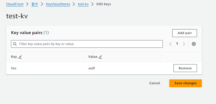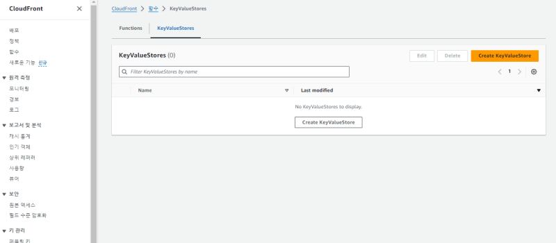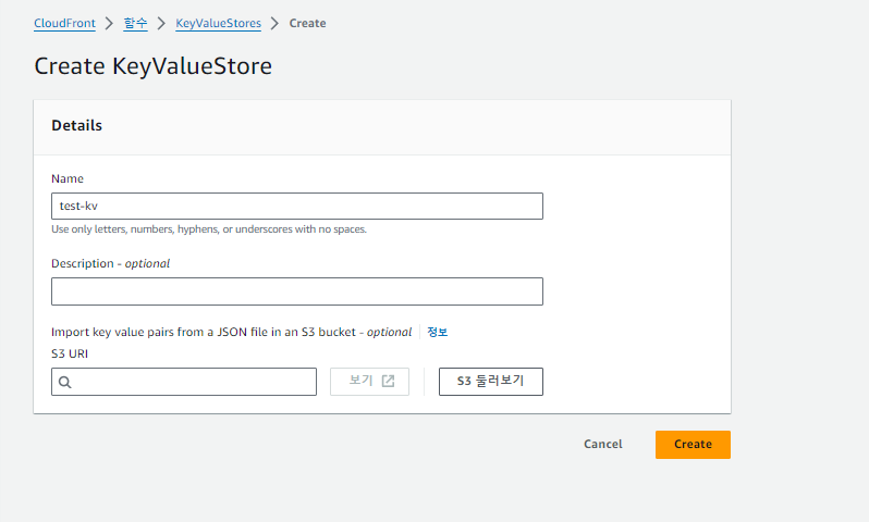 Cloudfront KeyValueStore๋ Cloudfront Function์ ๋ณด์กฐํ๋ ๋ถ๊ฐ๊ธฐ๋ฅ์ด๋ค.