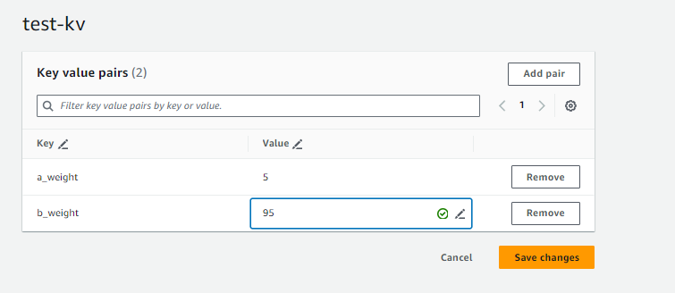 KeyValue ์คํ ์ด๋ฅผ ๊ธฐ๋ฐ์ผ๋ก A/B ๋ผ์ฐํ ํ๋ฅ ๊ฐ์ค์น๋ฅผ ์กฐ์ ํ๋ ๊ตฌ์ฑ์ ์ง๋ณด๋๋ก ํ๊ฒ ๋ค.