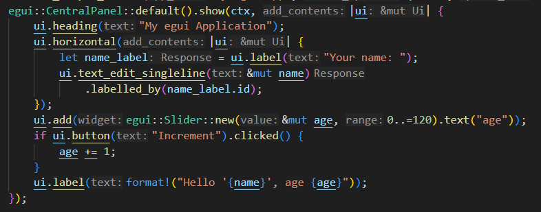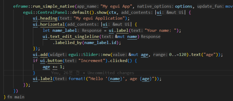 egui๋ Rust์ ์ฃผ์ GUI ํ๊ฒฝ ์ค ํ๋๋ค.