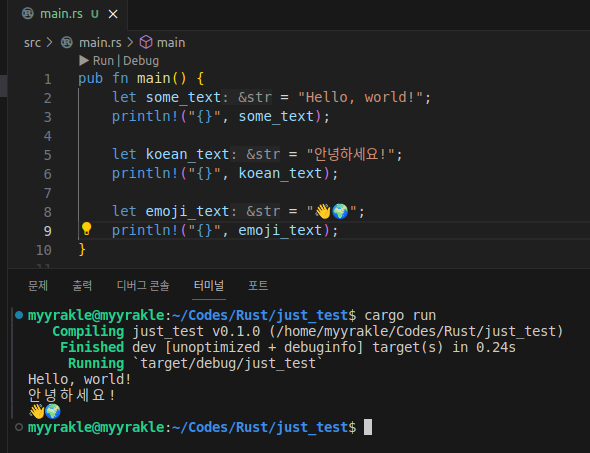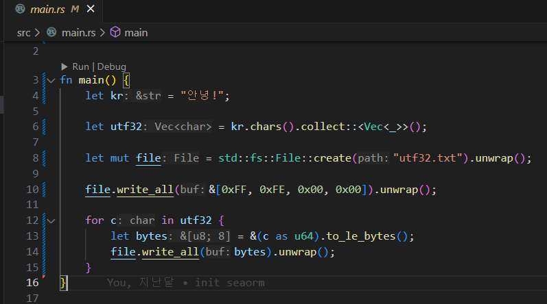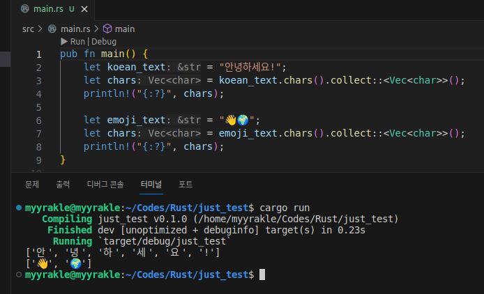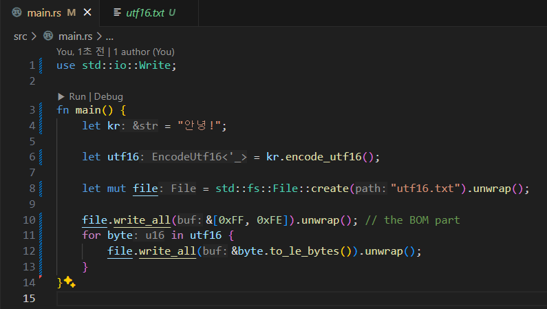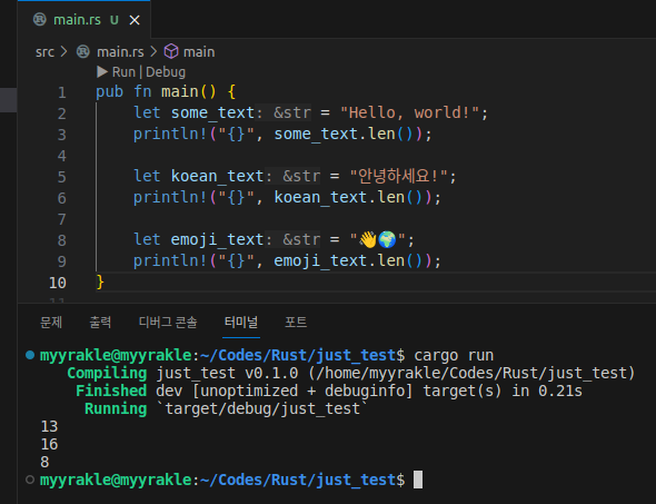 Rust 코드에서 적용되는 기본 인코딩은 UTF-8이다.