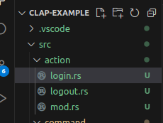 action 모듈을 두고 각 subcommand 동작마다 파일을 하나씩 뒀다.