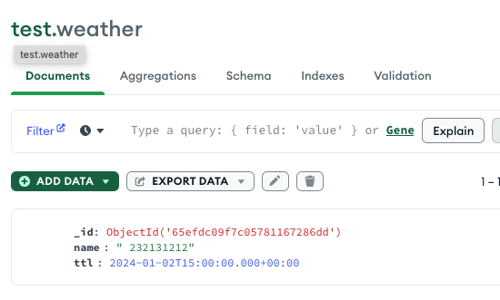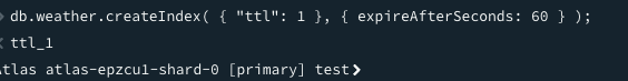 db.weather.createIndex( { "ttl": 1 }, { expireAfterSeconds: 60 } )