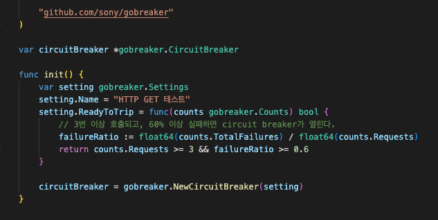var circuitBreaker *gobreaker.CircuitBreaker