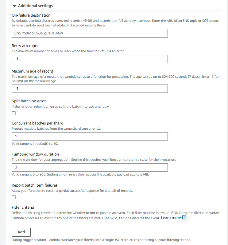 Dynamo Stream์ ์คํํ Lambda๊ฐ ์คํจํ๋ฉด ์คํจ ์ํ๋ก ๊ฐ์ฃผํ๊ณ ์ฑ๊ณตํ ๋๊น์ง ์ฌ์๋๋ฅผ ํ๋ค.