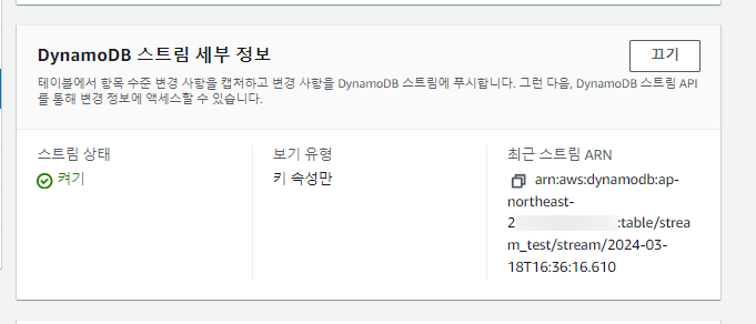 ๊ทธ๋ผ ์คํธ๋ฆผ ARN์ด ๋ง๋ค์ด์ง๋๋ฐ, ์ ๊ฑธ aws sdk๋ฅผ ํตํด ๋ฐ๋ก ์ฌ์ฉํ ์๋ ์๋ค.