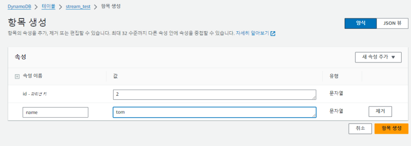 ๋จผ์ DynamoDB ํ ์ด๋ธ์ด ์์ด์ผ ํ๋ค.