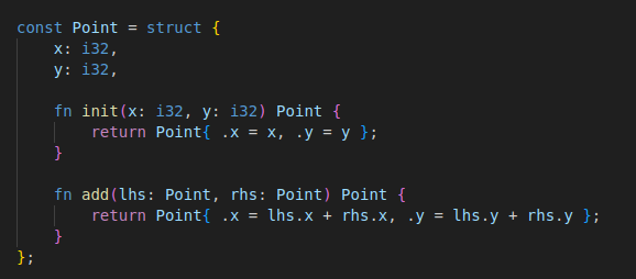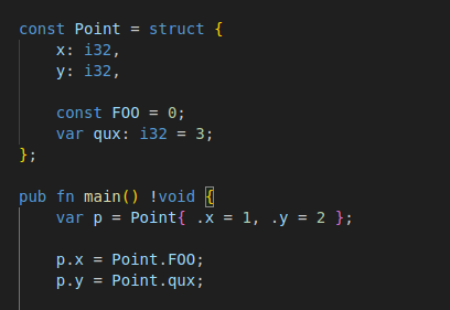 zig์ ๊ตฌ์กฐ์ฒด ์ ์๋ Rust์ Go๋ฅผ ์์ด๋์ ํํ๋ฅผ ์ง๋๋ค.