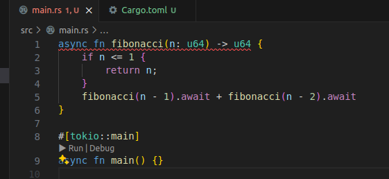 Rustμ async functionμ ꡬ쑰μ 볡μ‘ν¨ λλ¬Έμ λͺκ°μ§ λ²κ±°λ‘μ΄ μ μ½μ λ μκ³ μμλ€. async ν¨μμ μ¬κ· νΈμΆ λν λ§μ°¬κ°μ§λ€.