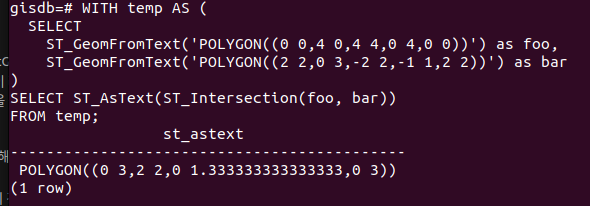 SELECT ST_AsText(ST_Intersection(foo, bar))