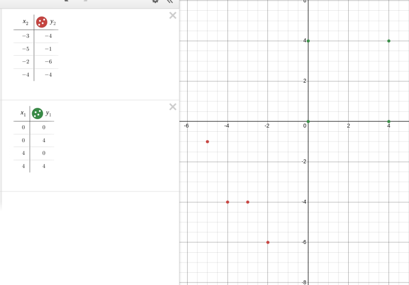 빨간색 점의 다각형과 초록색 점의 다각형은 현재 완전히 괴리되는 좌표에 존재한다. 어떻게 봐도 서로 겹치지 않음을 볼 수 있다.