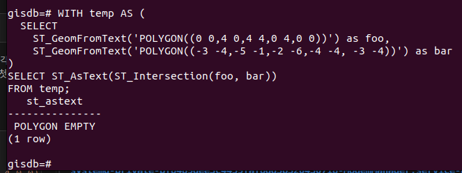 ST_GeomFromText('POLYGON((0 0,4 0,4 4,0 4,0 0))') as foo,