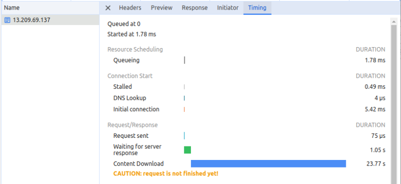 서버 응답에 1초, 실제 다운받는데는 23초가 걸렸다.