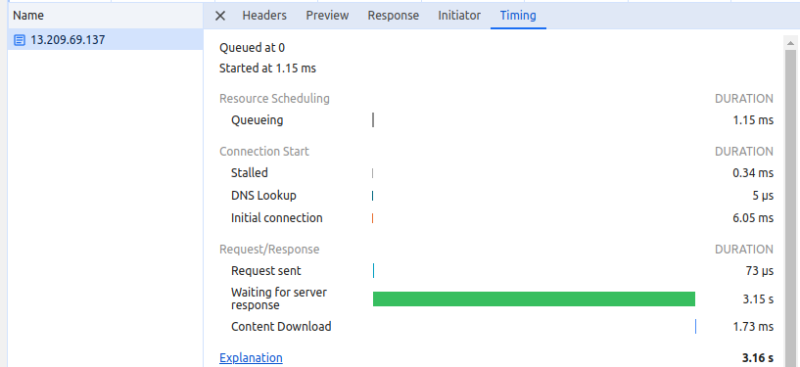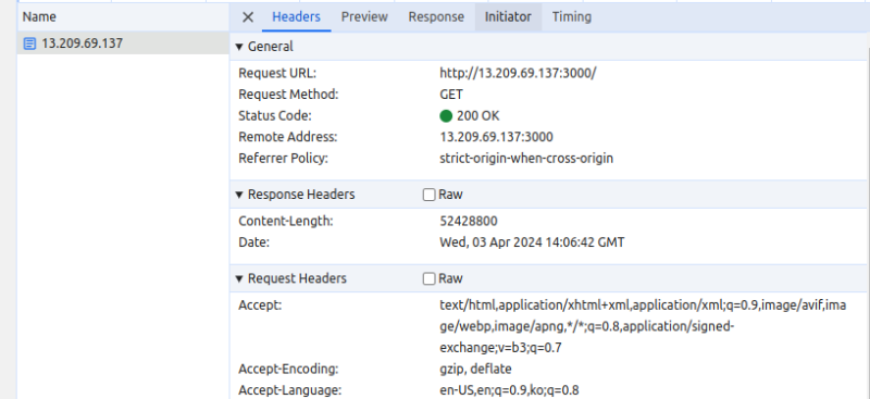 서버 실행시간은 3초로 길어진 대신, 다운로드 시간이 2초 미만으로 급격하게 줄어들었다.