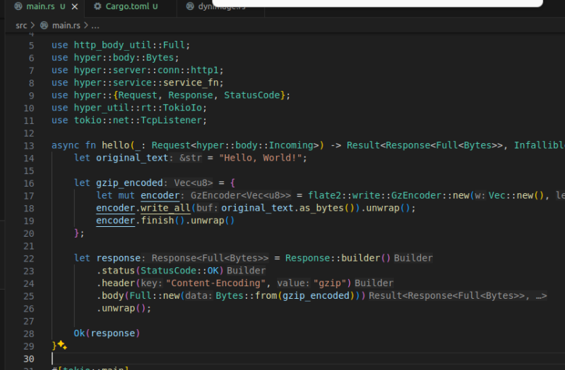 low level 제어가 가능한 Rust hyper 환경을 사용해서 간단한 예제를 보여보겠다.