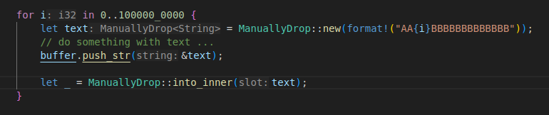 그럼 내부 값을 꺼내옴과 동시에 ManuallyDrop 타입이 사라져서 다시 자동 drop 대상이 된다.