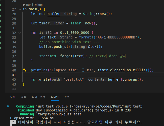 그리고 특이하게도 음침한 동작인데도 unsafe가 아니다. 이런 식으로 누수를 발생시키는건 Rc에서 상호참조로 누수가 발생하는 것과 같은 결의 의도된 동작이라고 보기 때문이다.