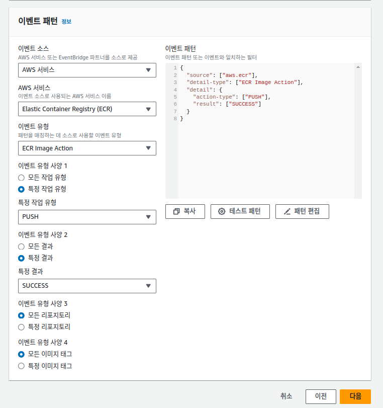์ ๋ฌ๋ฉด ECR์ ์ด๋ฏธ์ง๊ฐ ์ฑ๊ณต์ ์ผ๋ก push๋ ๋๋ง๋ค ํธ๋ฆฌ๊ฑฐ๋ฅผ ๊ฑธ ์ ์๋ค.