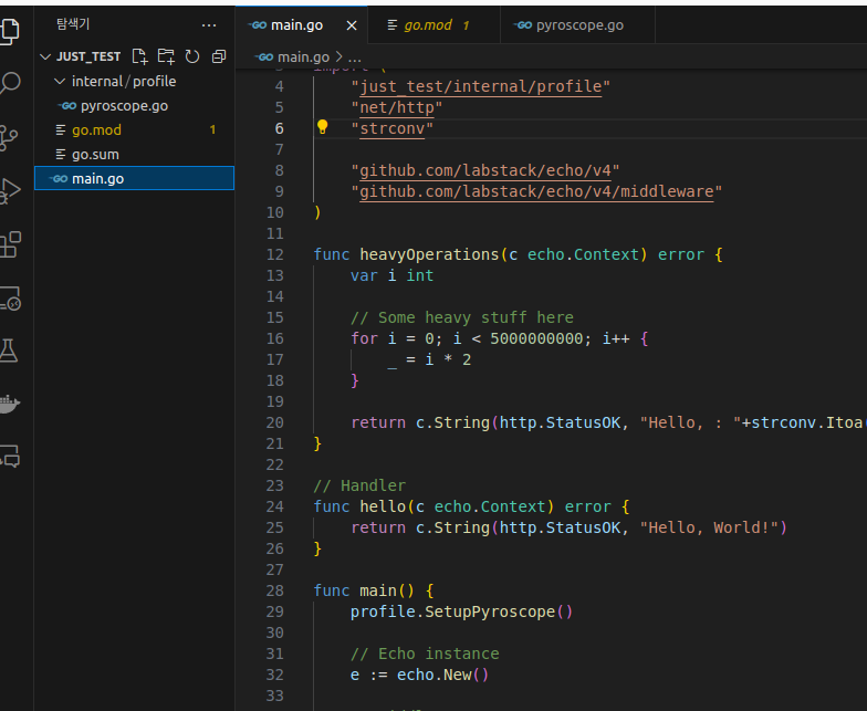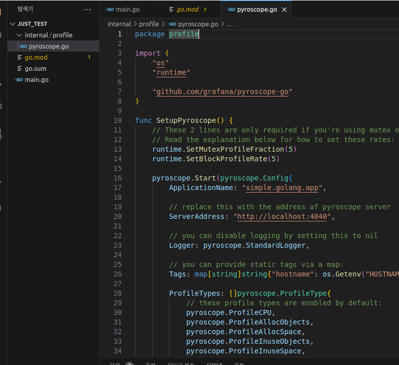 Go ํ๊ฒฝ์์ Pyroscope Client๋ฅผ ์ค์ ํ๋ ๋ฐฉ๋ฒ์ ๋ค๋ฃฌ๋ค.