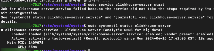 sudo service clickhouse-server start