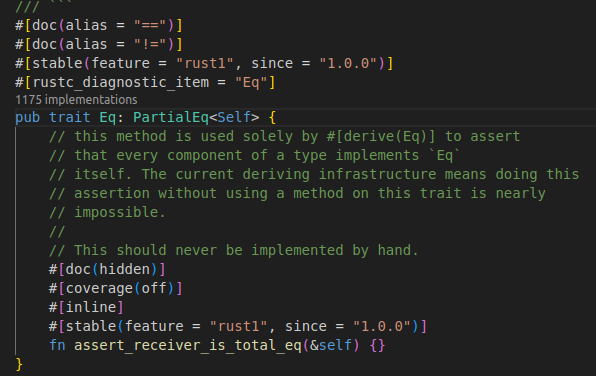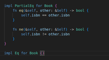 ์ด ํธ๋ ์์ ์ ์ฉ์ํค๋ ค๋ฉด PartialEq๊ฐ ๊ตฌํ๋ ์ํ์์ ๋น impl๋ง ์ถ๊ฐํด์ฃผ๋ฉด ๋๋ค.