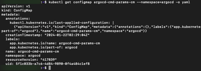 kubectl get configmap argocd-cmd-params-cm --namespace=argocd -o yaml