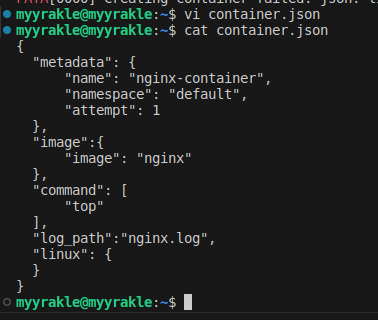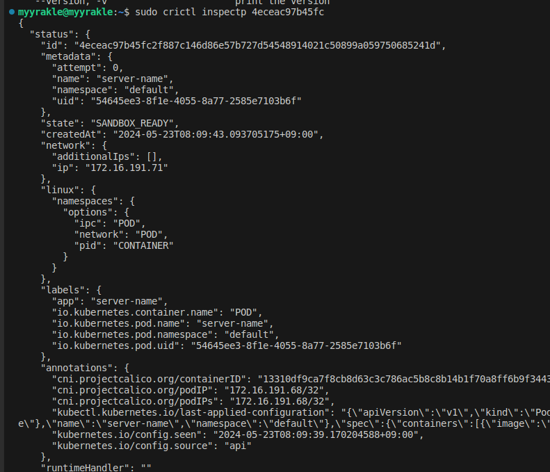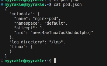 sudo crictl create ์๋๋ฐ์คID container.json pod.json