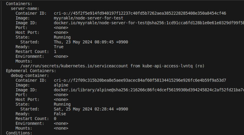 kubectl debug 기능을 사용하면 디버깅용 컨테이너를 띄워서 현황 조사에 응용할 수 있다.