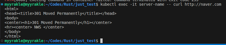kubectl exec -it server-name -- 명령어...