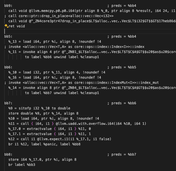 ์ด์ ๋ธ๋ฆฌ ์์ค๊น์ง ๊ฐ๊ธฐ์๋ ๋๋ฌด ๊ณ ํต์ค๋ฝ๊ณ , llvm์ด ์๊ธฐ๋ค ๋ง์๋๋ก ์ต์ ํ๋ฅผ ๊ฐํ๋ ๊ฒ๋ ์๊ธฐ ๋๋ฌธ์ Rust๊ฐ ์ต์ ํ๋ฅผ ํ๋ ๋ถ๋ถ์ ๋ณด๊ณ ์ถ๋ค๋ฉด llvm-ir์ ๊น๋ณด๋ ๊ฒ์ด ๊ฐ์ฅ ๋ช ํํ ๋ฐฉ๋ฒ์ด๋ค.