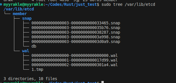 ๊ทธ๋ฆฌ๊ณ ์ค์ ๋ก ํธ์คํธ ๋จธ์ ์ /var/lib/etcd ๊ฒฝ๋ก๋ฅผ ๋ค์ง๋ฉด k8s์ ๋ํ ์ ๋ณด๋ค์ด ์ ์ฅ๋ ๊ณต๊ฐ์ ์ฐพ์ ์ ์๋ค.