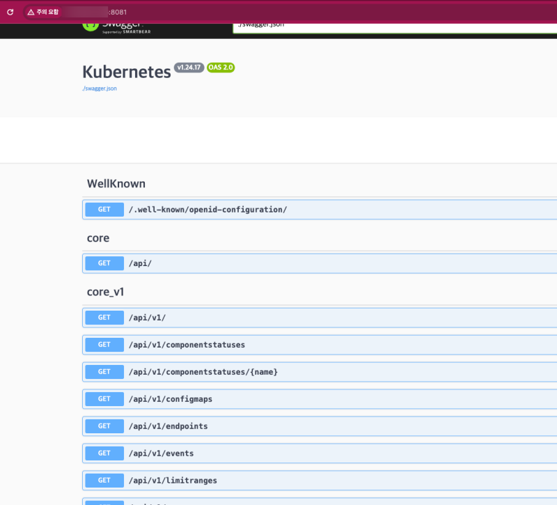 k8s api ์๋ฒ๋ ์์ธ๋ก api์ ๋ํ openapi ๊ท๊ฒฉ๋ ๋ฐ๋ก ์ ๊ณต์ ํ๋ค.