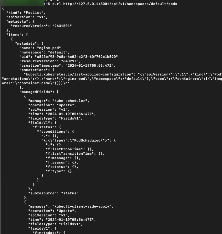 k8s api์ ๊ฐํธํ๊ฒ ์ ๊ทผํด์ ์ฌ์ฉ์ ํด๋ณด๊ณ ์ถ๋ค๋ฉด, ์์ฒด์ ์ผ๋ก ์ ๊ณตํ๋ ํ๋ก์ ๊ธฐ๋ฅ์ ์ฌ์ฉํ๋ฉด ๋๋ค.