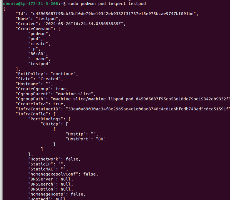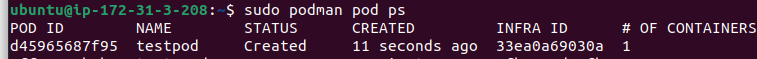 sudo podman pod create -p 80:80 --name testpod