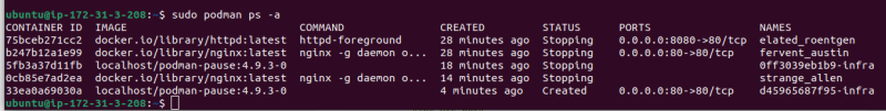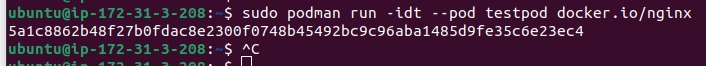 sudo podman run -idt -p 80:80 --pod testpod docker.io/nginx