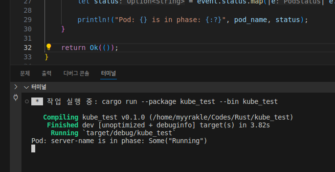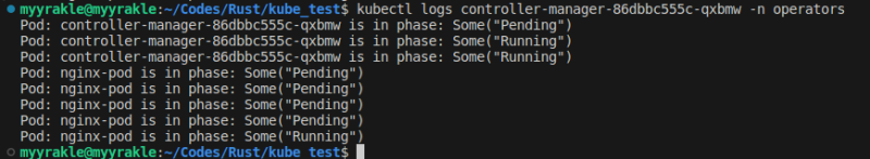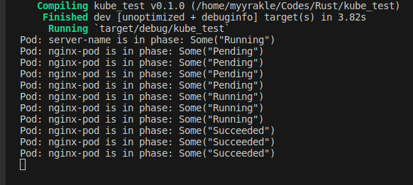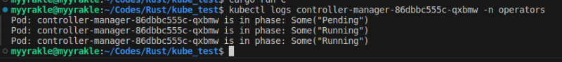 println!("Pod: {} is in phase: {:?}", pod_name, status);