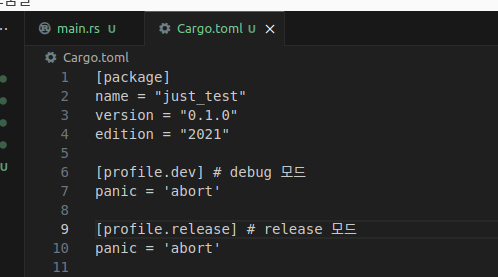 ์ panic = 'abort'๋ฅผ ๋ฃ์ผ๋ฉด panic unwind์ ๋ํ ์ฒ๋ฆฌ ์ฝ๋๊ฐ ๋ฐ์ด๋๋ฆฌ์์ ์ ๊ฑฐ๋๋ค.