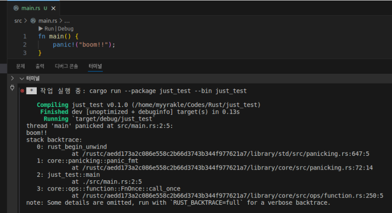 panic์ Rust์ ์ค๋ฅ ์ฒ๋ฆฌ ์๋จ ์ค ํ๋๋ค.