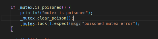 ๊ทธ๋๋ ์์ ์๋ mutex๊ฐ ํ๋ฒ poison์ ๊ฑธ๋ฆฌ๋ฉด ๋ป๊ฐ์ ๋ณต๊ตฌํ ์๊ฐ ์์๋๋ฐ, ์ด์ ๋ clear_poison์ผ๋ก ์ด๊ธฐํํ๋ ๊ฒ์ด ๊ฐ๋ฅํ๋ค.