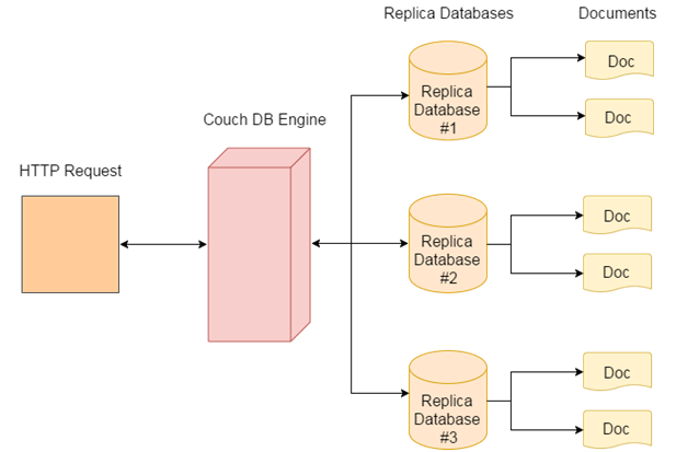 MongoDB๋ single master - multi slave ๊ตฌ์กฐ๋ก ๋ณต์ ๋ฅผ ์ฒ๋ฆฌํ๋ ๋ฐ๋ฉด, Couch๋ multi master๋ก ๋ณต์ ๋ฅผ ์ฒ๋ฆฌํ๋ค. ์ด๋ฌํ ๊ตฌ์กฐ ํ์ ๊ฐ์ฉ์ฑ ์ธก๋ฉด์์๋ Couch๊ฐ ๋ ์ ๋ฆฌํ๋ค.