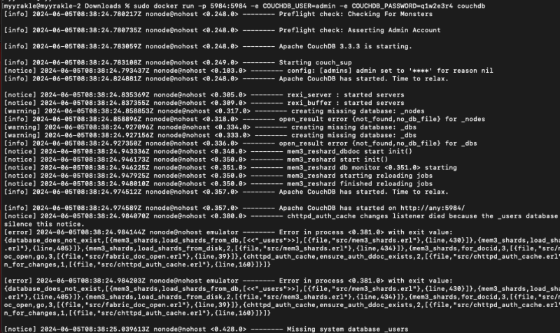 sudo docker run -p 5984:5984 -e COUCHDB_USER=admin -e COUCHDB_PASSWORD=q1w2e3r4 couchdb
