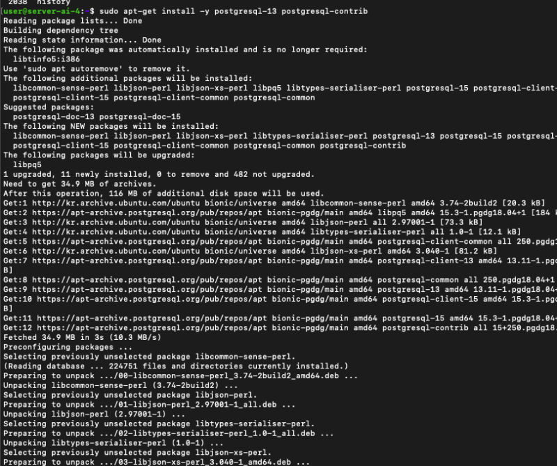 sudo apt-get install -y postgresql-13 postgresql-contrib