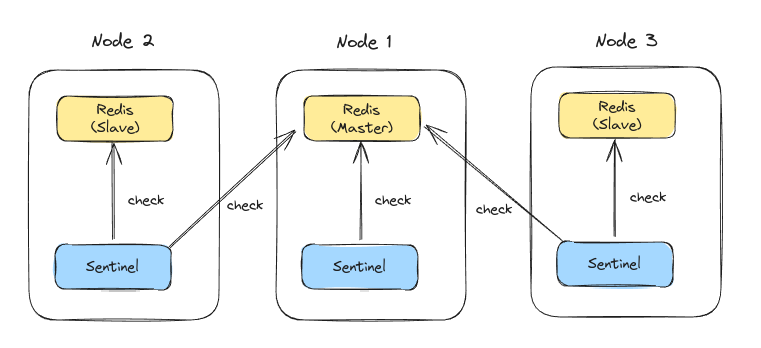 그래서 master의 생존을 확인해주는 Sentinel이라는 서브프로세스를 따로 구성하고, 그걸 통해 master가 뻗으면 새 master를 선정하는 일련의 작업을 수행한다.