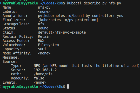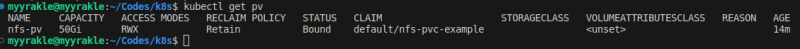그리고 pv에도 사용중임을 뜻하는 Status:Bound가 설정될 것이다.