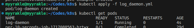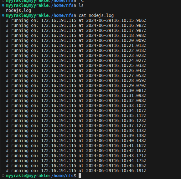 이러면 방금 만든 Claim을 볼륨으로 등록하고, 컨테이너 이미지에도 마운트해서 /var/log/nodejs 경로에 파일이 쓰일 때마다 nfs에도 쓰이도록 한다.