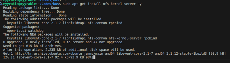 NFS 기반으로 스토리지를 구성하려면, 먼저 쿠버네티스와 별개로 NFS 서버를 구성해야 한다.