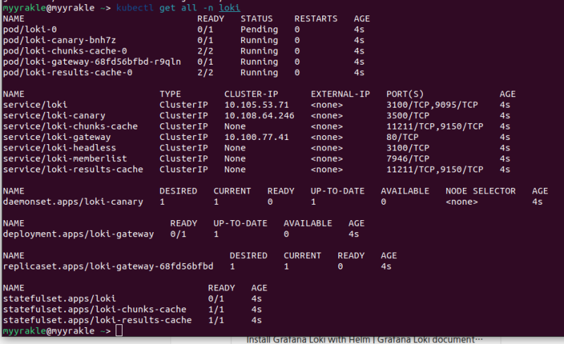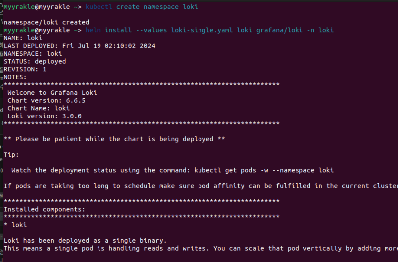 helm install --values loki-single.yaml loki grafana/loki -n loki