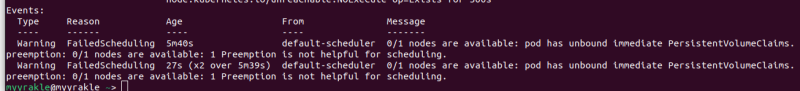 0/1 nodes are available: pod has unbound immediate PersistentVolumeClaims. preemption: 0/1 nodes are available: 1 Preemption is not helpful for scheduling.