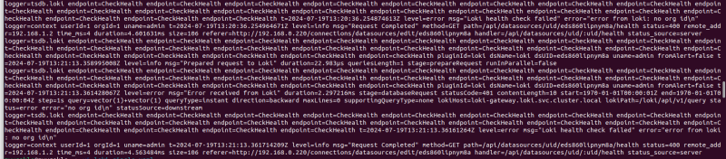 loki์ ์ธ์ฆ์ด ์ผ์ ธ์๋ค๊ฑฐ๋, networkpolicy๊ฐ ๊ฑธ๋ ค์๋ค๊ฑฐ๋, ๊ทธ๋ฅ ์๋ํฌ์ธํธ๊ฐ ์๋ชป๋์๊ฑฐ๋. ์์ธ์ ์ฌ๋ฌ๊ฐ์ง๊ฐ ์์ ์ ์๋ค. ์ ํํ ์์ธ์ ๊ทธ๋ผํ๋ ์๋ฒ ๋ก๊ทธ๋ฅผ ๋ณด๋๊ฒ ์ ํํ๋ค.