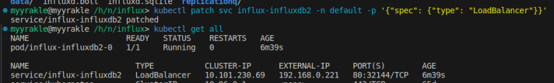 kubectl patch svc influx-influxdb2 -n default -p '{"spec": {"type": "LoadBalancer"}}'