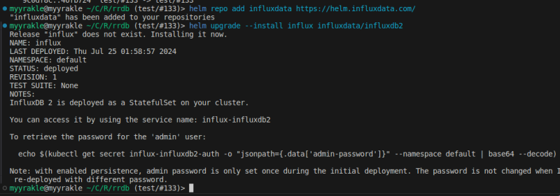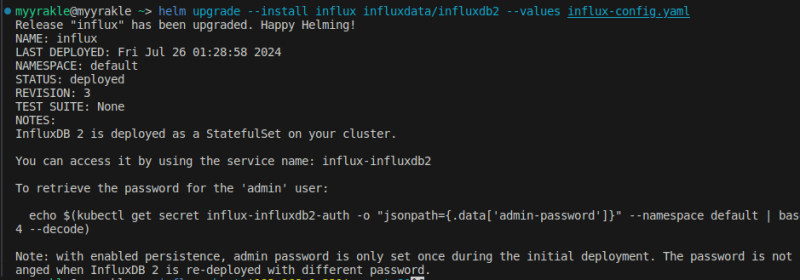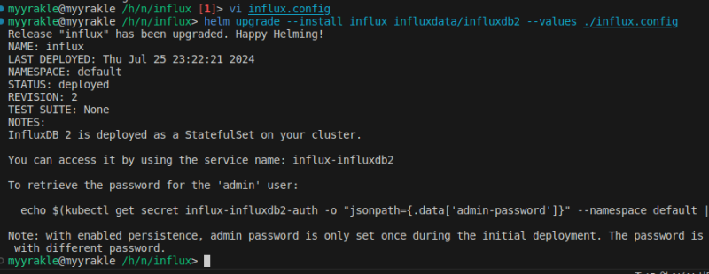 helm upgrade --install influx influxdata/influxdb2 --values influx-config.yaml